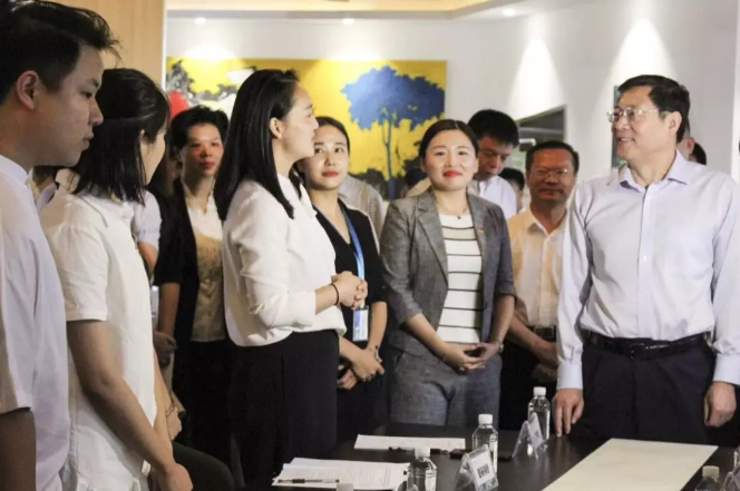 7月12日上午,省委书记杜家毫在58小镇考察,与青年创业人才亲切交谈。